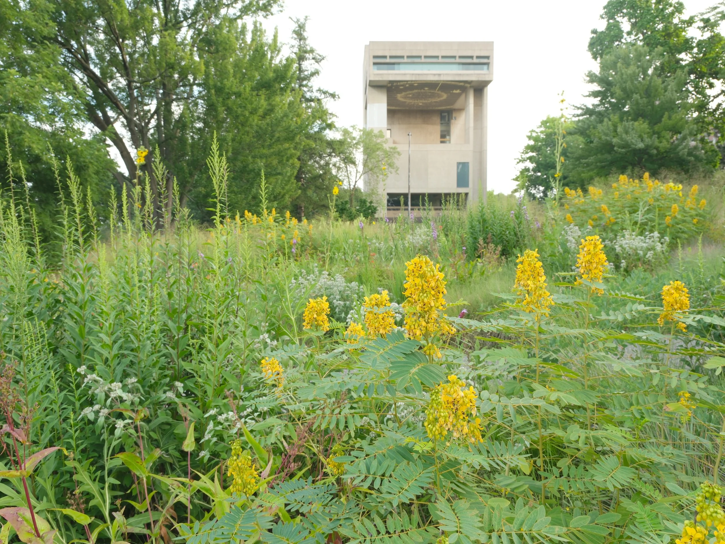 Installed as part of the 2022 Cornell Biennial, this project creates a moment of wildness on Cornell’s Ithaca, New York, campus. Bisected by a busy pedestrian path, students walking to class find themselves standing within the planting, presenting the opportunity to observe typically unseen species of plants or to watch pollinators.