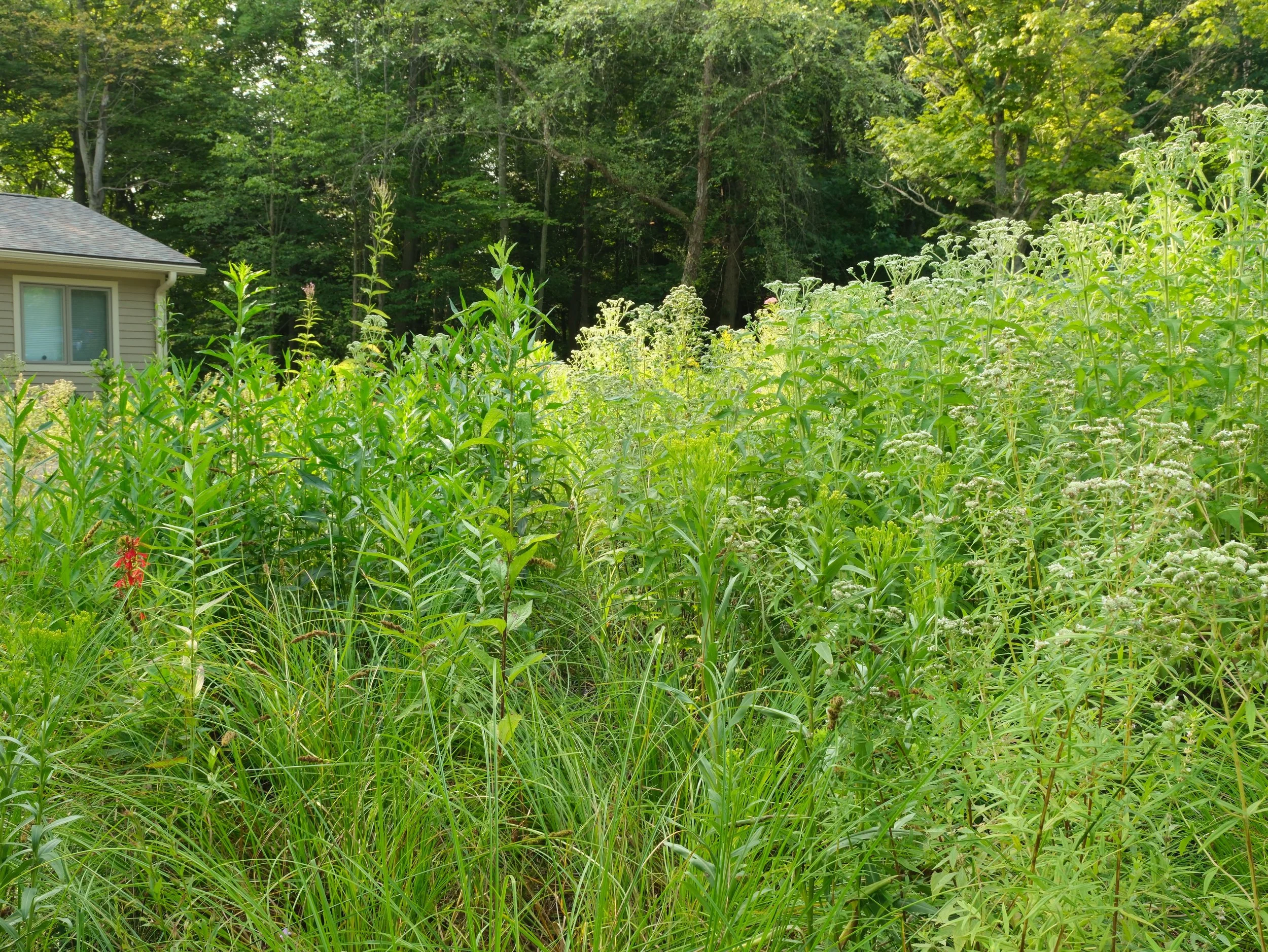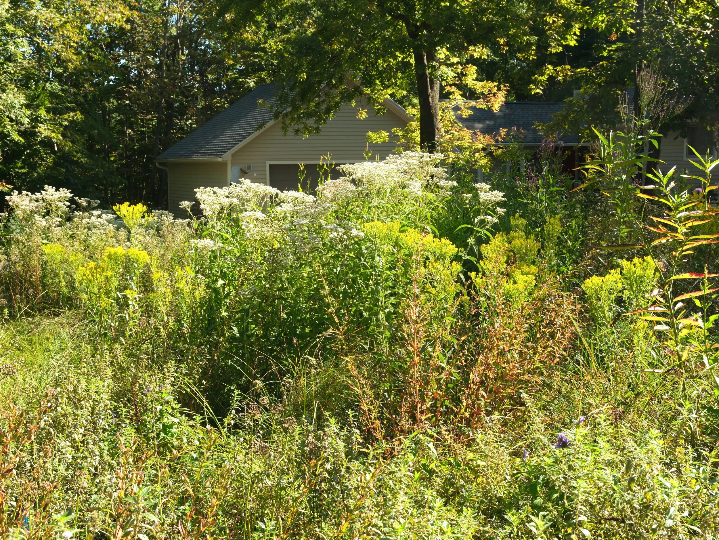 Assembling a palette of competitive plant species, the design initiates a dense fabric of plants intended to resist weed intrusions and thrive on the site’s challenging soil conditions. Beneath two existing hickory trees, a grove of spicebush, along with an area of woodland sedges, helps to mediate between the house and the meadow.